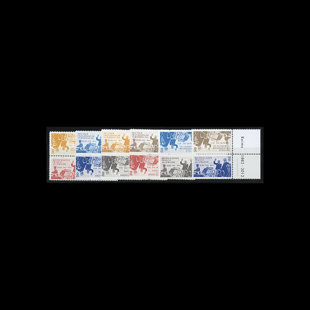 N°DG12-3P1/6D : Série de 6 paires de vignettes franco-allemandes TÊTE-BÊCHE