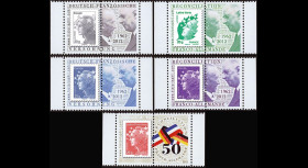 N°DG12-5PT1/5 : Série de 5 valeurs "Marianne et l'Europe" (TVP Ecopli, Lettre Verte, Lettre Prioritaire, Europe, Monde) sur 5 porte-timbres dentelés et gommés