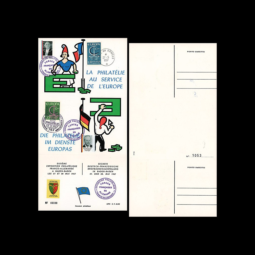 C’est ainsi que l’association philatélique «LIPHI» des Forces Françaises en Allemagne (FFA) mis sur pied dès 1961 un programme d’expositions philatéliques franco-allemandes sur le thème «la philatélie au service de l’Europe». Ces expositions se déroulaient dans des villes garnison comme Berlin (Quartier Napoléon), Baden-Baden (Quartier général), Rastatt, etc.