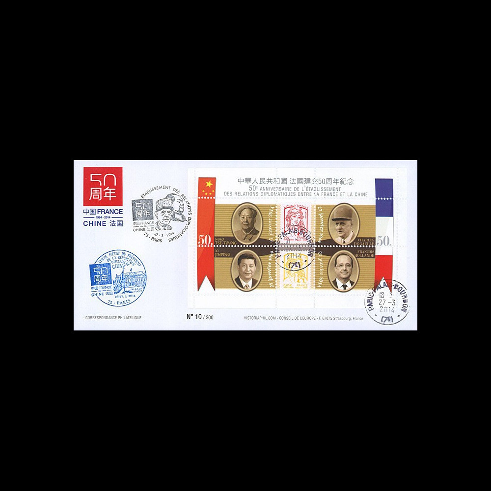 + cachet NOIR "50 ans France-Chine / Mao et de Gaulle" Paris 27.3.2014