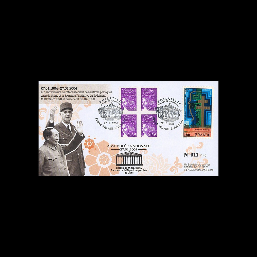 AN04-CH2 : FRANCE Pli spécial “27.01.2004 : 40 ans des Relations diplomatiques France-Chine / 26-29.01.2004 : Visite officielle en France du Président chinois Hu JINTAO“