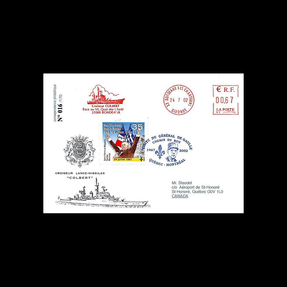 oblitération flamme rouge (EMA) 0,67€ "Croiseur Colbert, Bordeaux" 24.07.2002