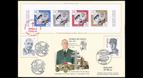 5 oblitérations spéciales pour le timbre PA. Charles de Gaulle