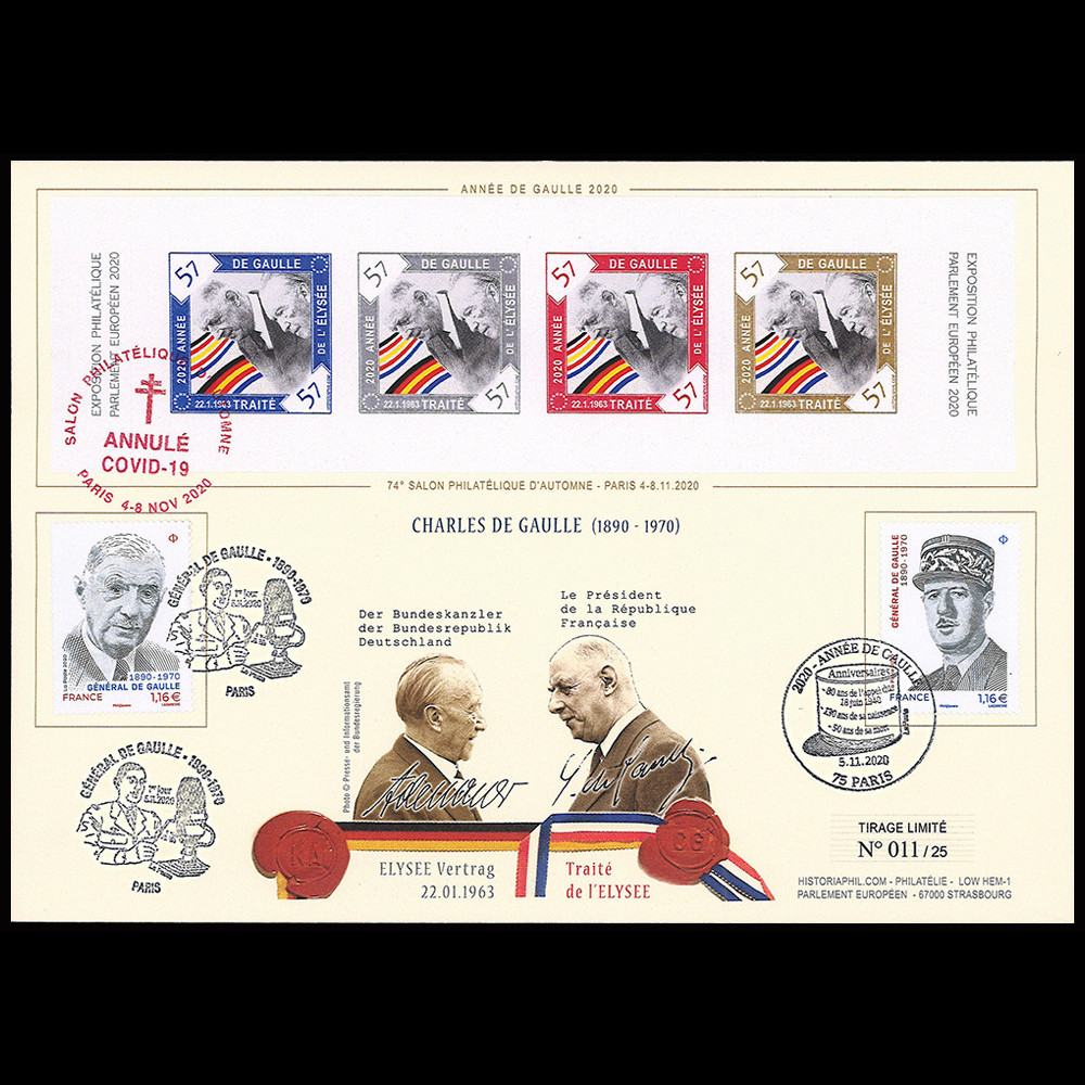 oblitération GF PARIS "2020 Année de Gaulle (Salon Philatélique d'Automne)" 05.11.2020