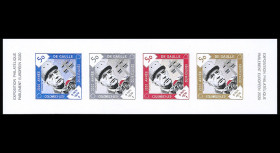 4) Bloc NON DENTELÉ de 4 vignettes “2020 Année de Gaulle 1890-1970 - 50e anniversaire de son décès à Colombey-Les-Deux-Eglises, 9 nov. 1970 - EBR Panhard transportant le cercueil du Général et Croix de Lorraine"