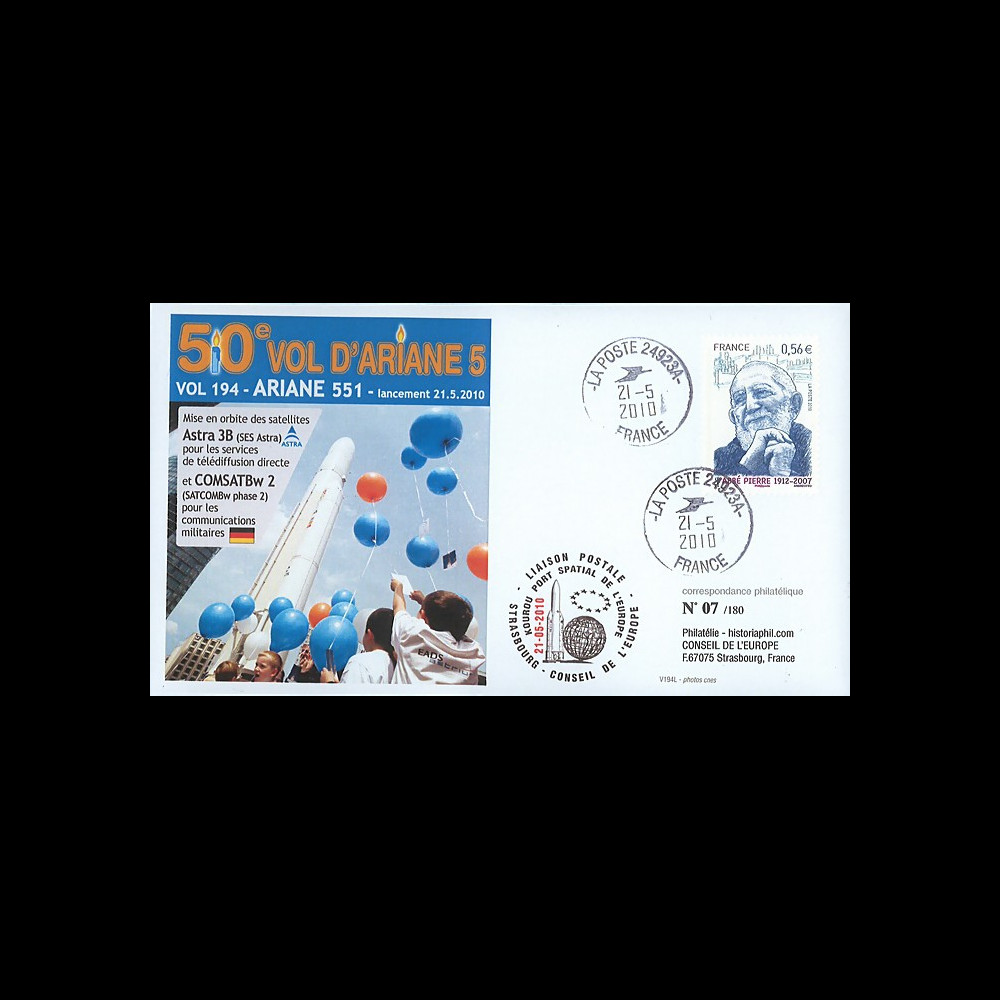 V194L-T3 : 2010 - FDC Kourou Vol 194 Ariane - Astra 3B / COMSATBw-2 - 50e vol Ariane 5