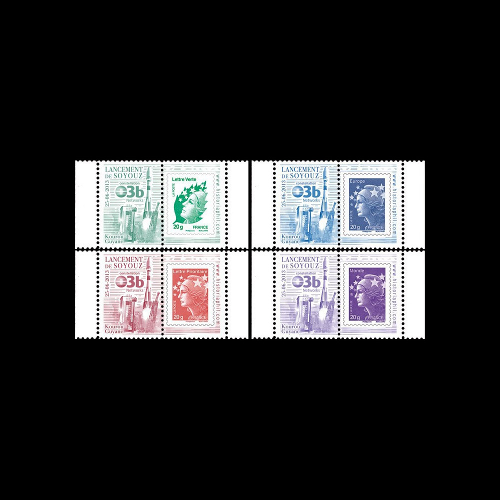 N°VS05L-PT1/4 : série de 4 porte-timbres dentelés et gommés “Vol N°05 Soyouz 25.06.2013 - Constellation O3b, accès Internet“