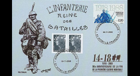Affranchissement France 1 valeur 0,55€ "Armistice 1914-1918, 2008" oblitération GF Tarbes "1er Jour - Armistice 1914-1918" (France) 11.11.2008