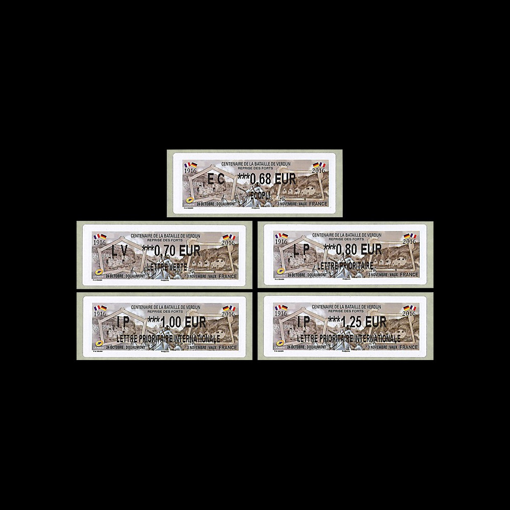 CENT16-1/5N : FRANCE série de 5 vignettes LISA France “1916-2016 Centenaire de la Bataille de Verdun / Reprise des forts / Douaumont / Vaux”