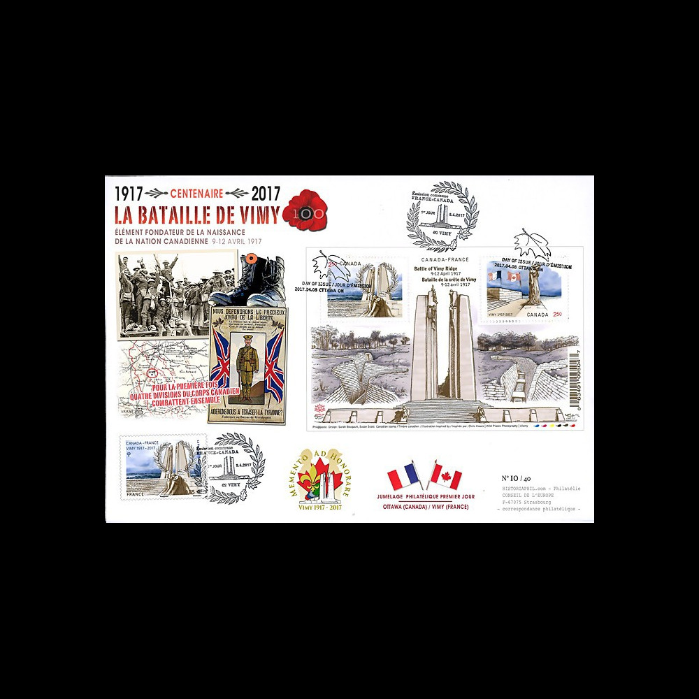 oblitération Premier Jour Vimy "Emission commune FRANCE-CANADA" 08.04.2017