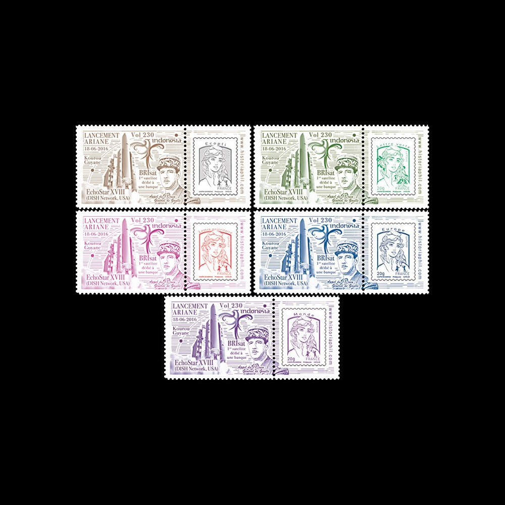 "18.06.2016 : Lancement Fusée ARIANE 5 ECA - Version 584 - Vol n°230 / Mise en orbite des satellites de télécommunications Echostar XVIII (Dish Network, USA) & BRIsat (BRIbank, Indonésie), premier satellite appartenant à un établissement bancaire / Appel du 18 juin Général DE GAULLE"
