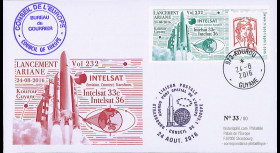 N°VA232L-T1 : FDC KOUROU (Guyane française) "24.08.2016 : Lancement Fusée ARIANE 5 ECA - Vol n°232 / Mise en orbite des satellites de télécommunications Intelsat 33e et Intelsat 36 (INTELSAT Eurovision Connect Transform)