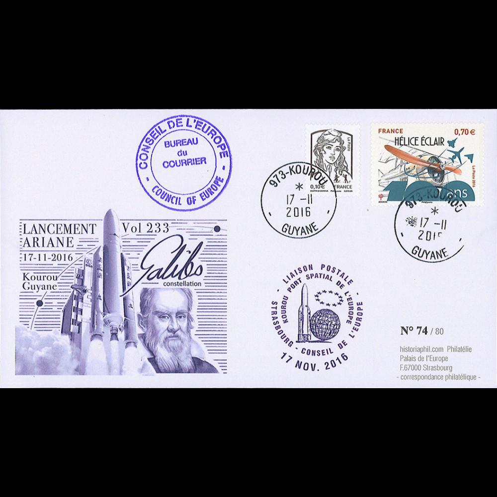 + cachet violet "Port spatial de l'Europe - Kourou" (Guyane française) 17.11.2016