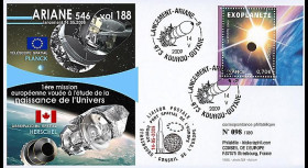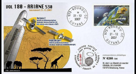 Chaque enveloppe spéciale est oblitérée «Kourou - Guyane» du jour du lancement d’ARIANE.