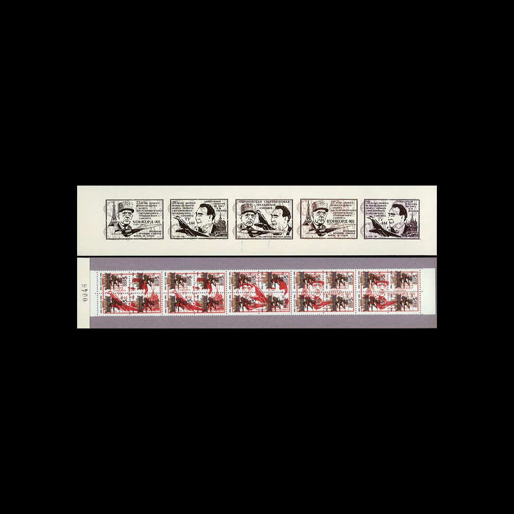 N°DG96-TU144C4 : Carnet 20 x 5k URSS KIRGHIZIE 1990 "Frounze" surcharge rouge "de Gaulle, Brejnev, Concorde, Tupolev TU144"