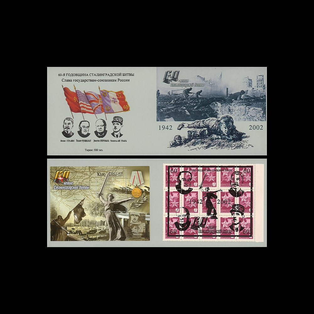 N°STAL02-C2 : Carnet N°1 (non plié) "60e anniversaire de la Bataille de Stalingrad 1942 - 2002" Chefs des Nations Alliées de l'URSS : Staline, Roosevelt, Churchill, de Gaulle