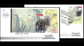 - 8 vignettes illustrées du visuel monochrome (bleu-vert, violet, brun, orange, bleu, noir, rouge, vert) du timbre personnalisé “80 ans Libération Strasbourg 1944-2024“