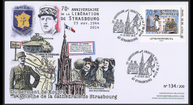 LIB14-STR1/3 : série 3 FDC France 2014 “70 ans Libération de Strasbourg, 1944-2014 - Leclerc et de Gaulle“