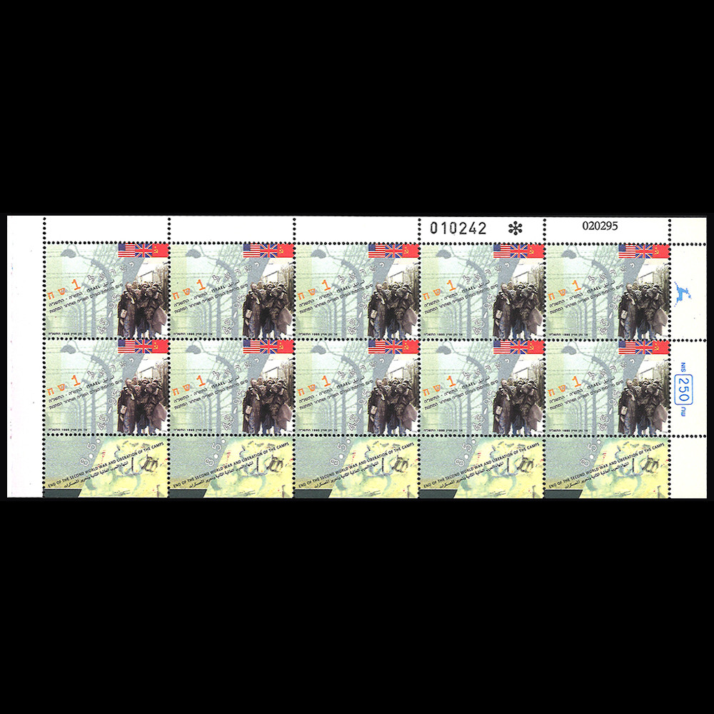 LIB95-ISR1F : Feuillet Israël 1995 - 10 val. avec TAB “50e anniversaire de la Fin de la Seconde Guerre Mondiale et de la LIBÉRATION DES CAMPS DE CONCENTRATION 1945-1995“