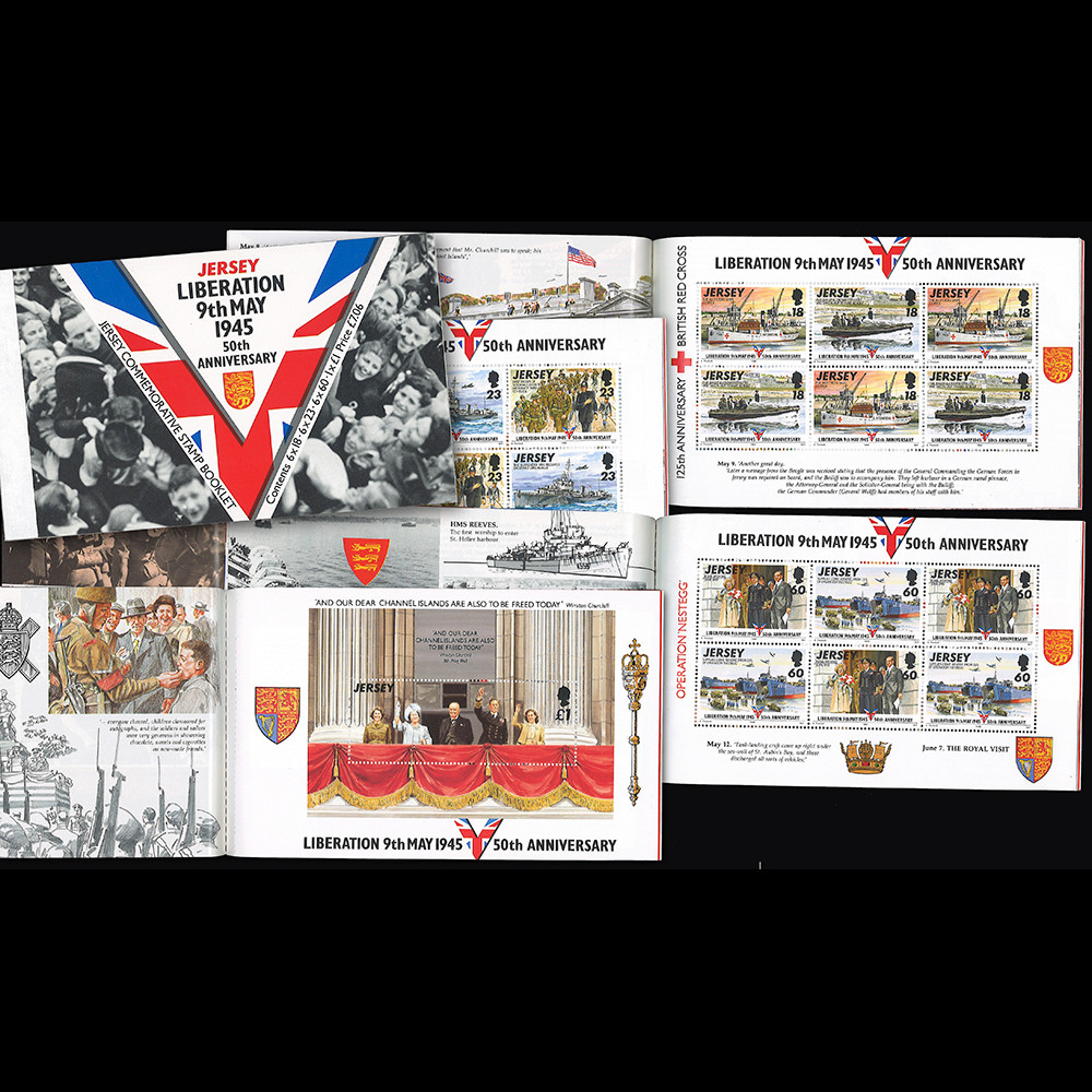 LIB95-JEC : Carnet Prestige Grande-Bretagne - Jersey 1995 “50e anniversaire de la Fin de la Seconde Guerre Mondiale - Libération de l’occupation allemande, 9 Mai 1945 - Winston Churchill“ contenant 4 BLOCS de timbres inédits.