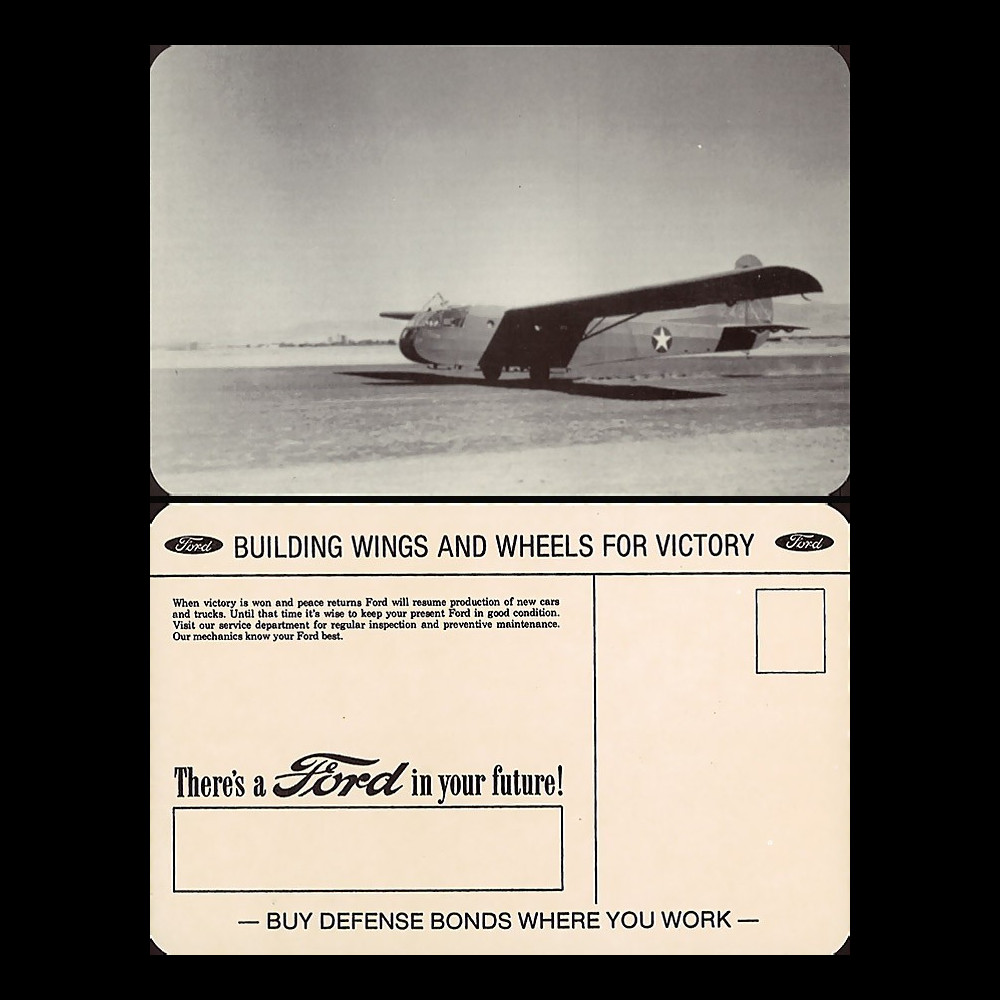 N°W2-USWB09 : CP patriotique US "Planeur Waco CG4 Glider, Débarquement Allié en Normandie D-DAY 1944 - BONS D'ARMEMENT FORD 1942-1945"
