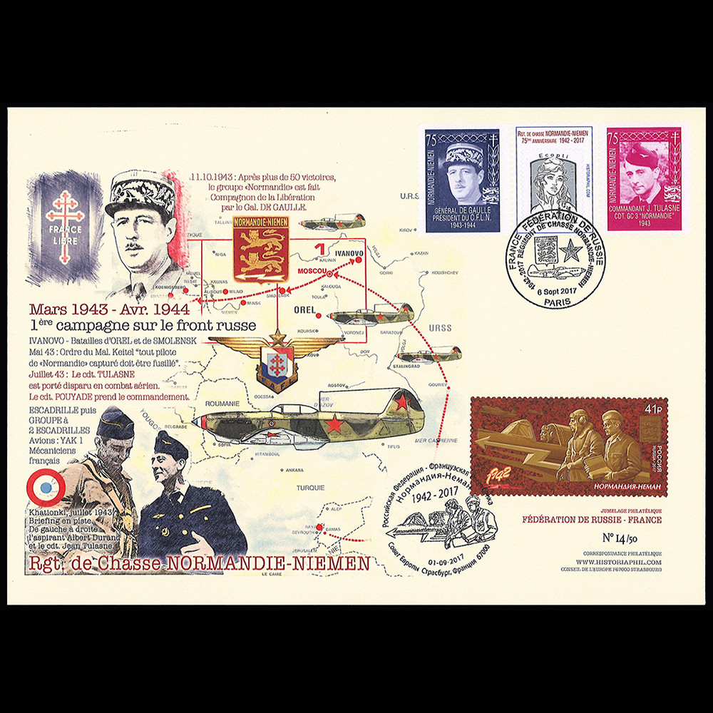 - Oblitération Paris “1er Jour Régiment de Chasse Normandie-Niémen 1942-2017“ 06.09.2017