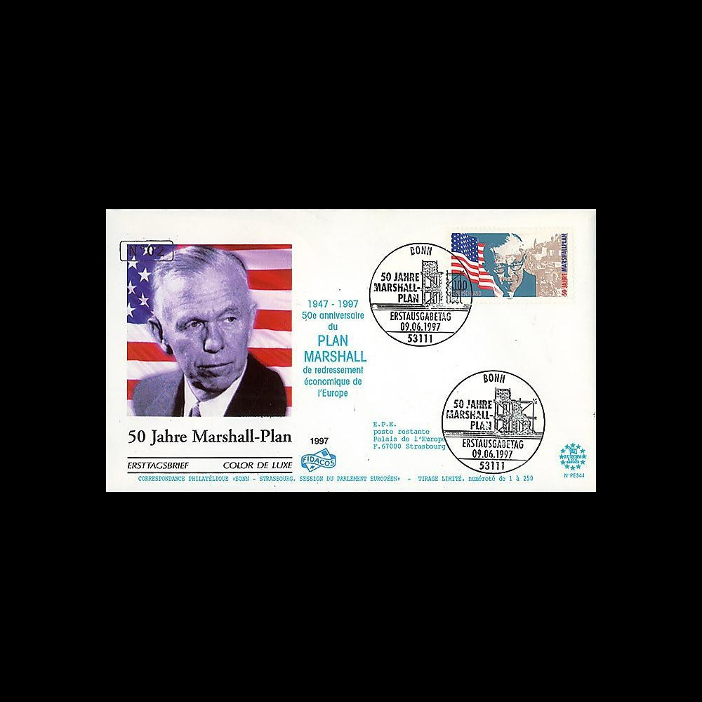 N°PE344 : FDC ALLEMAGNE 100Pf '50 ans Plan Marshall'