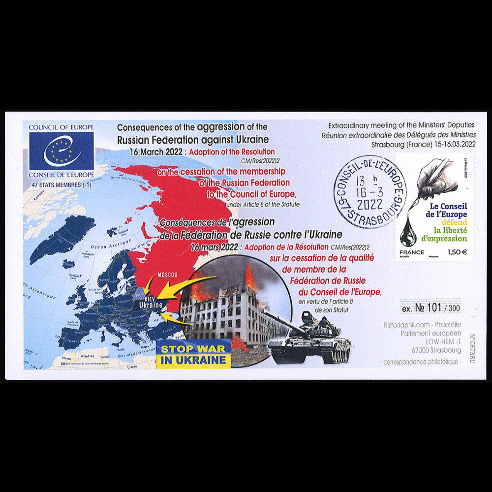 - Oblitération tàd Strasbourg (France) "Conseil de l'Europe" 16.03.2022