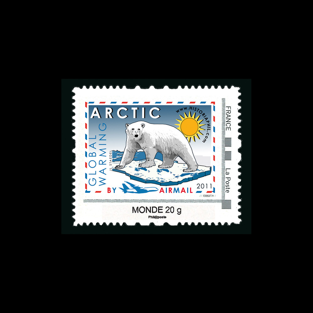 N°A380-131N : Timbre personnalisé France 2011 “Monde 20g Entreprise“ «Réchauffement climatique dans l’Arctique / Arctic Global Warning / Ours polaire»