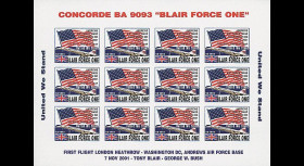 - Cachet commémoratif du vol sur une paire de vignettes dentelées "BA 9093 Concorde BLAIR FORCE ONE"
