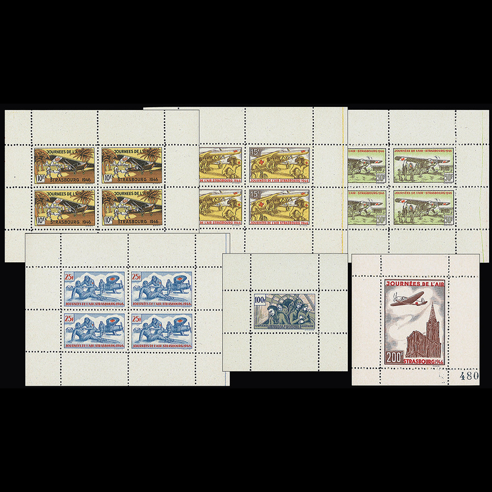 Bloc n°1 4 x 10F "Transport de blessés au Maroc / Journées de l'Air à Strasbourg (1946)" (ft. 9 x 11,5 cm)
