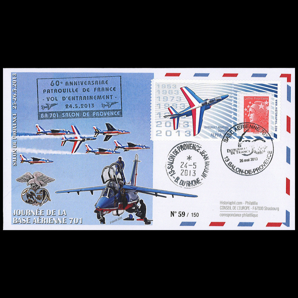 + cachet noir BA 701 Salon-de-Provence "Base Aérienne 701 : Vol d'Entraînement - 60e anniversaire de la Patrouille de France" (France) 24.05.2013