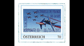 N°PAF13-9N : AUTRICHE 1 valeur Timbre-poste personnalisé (TPP) 70c "28-29.06.2013 : AIRPOWER 2013 / 60 ans Patrouille de France - ALPHAJET" 2013 :