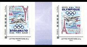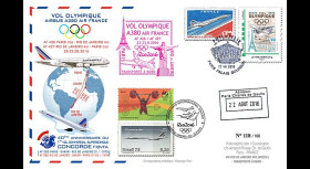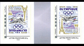 Des timbres-poste personnalisés, cachets et plis spéciaux franco-brésiliens ont été spécialement conçus par le studio graphique d’Historiaphil pour commémorer le “Vol Olympique Paris-Rio 2016“ et les “40 ans du premier vol commercial supersonique de Concorde“ effectué en 1976 sur cette même ligne. Un tirage limité de 240 documents aérophilatéliques a pu être transporté à bord, avec l’aimable participation du personnel navigant d’Air France qui a opéré le “Vol Olympique“.