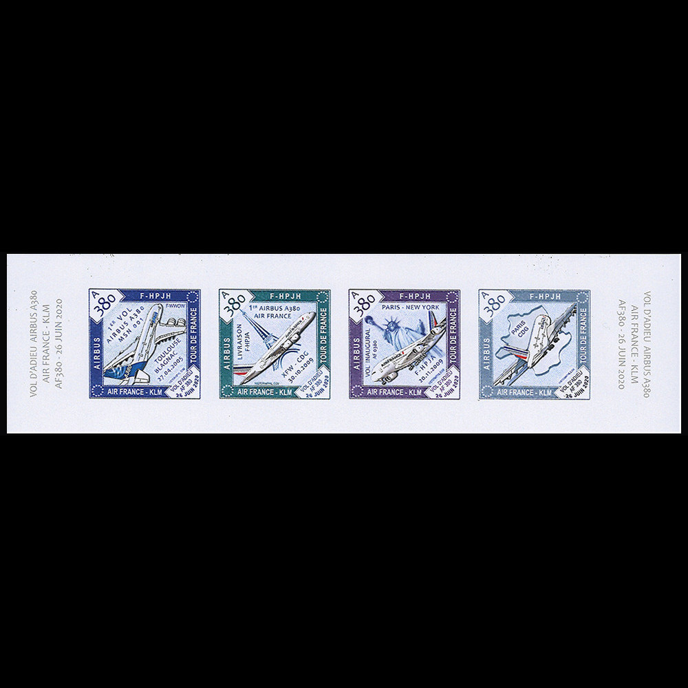 C'est avec l'aimable participation de membres du personnel navigant d'Air France, que les éditions Historiaphil ont réalisé en un temps record une collection hommage d'enveloppes aérophilatéliques à tirages limités, transportées à bord du "Vol d'adieu AF 380" du 26 juin 2020.