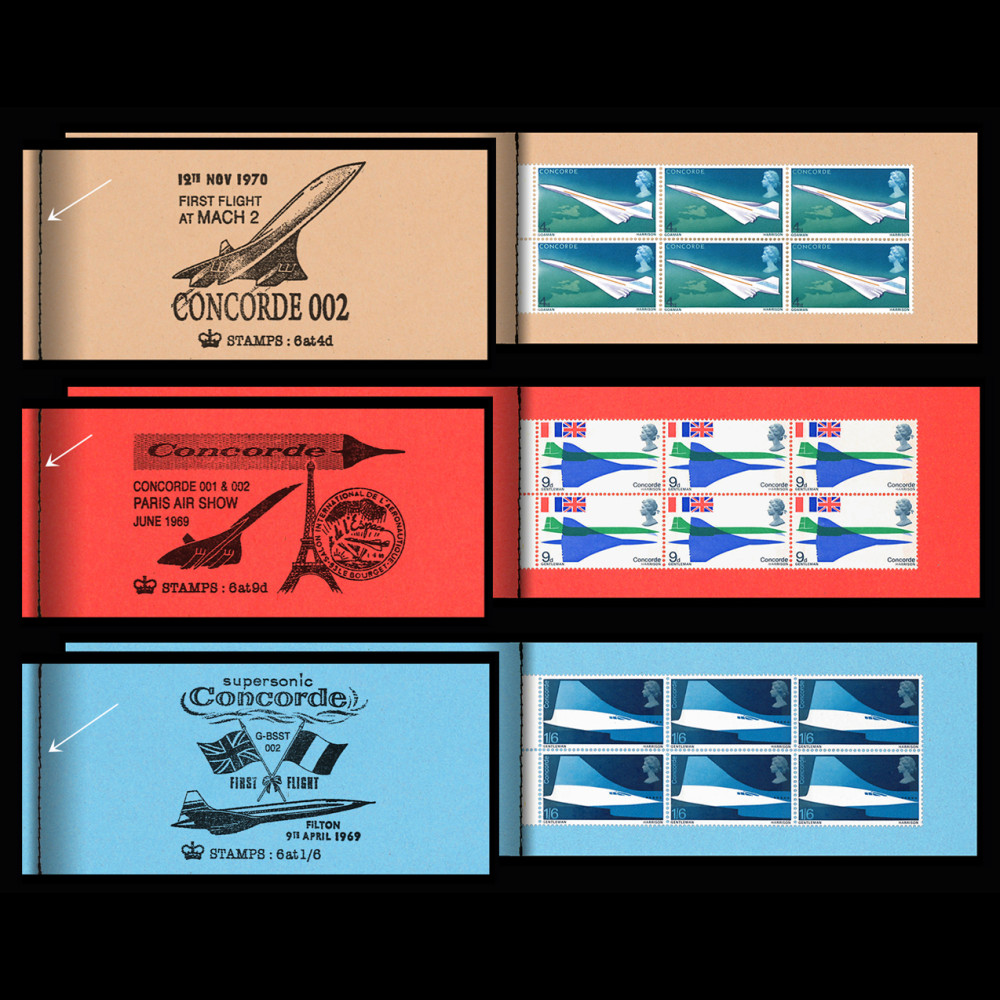 3) 6 x 1/6 (£) “Concorde / nose and empennage” blue cover “Supersonic Concorde G-BSST 002 - First Flight Filton 9th April 1969“