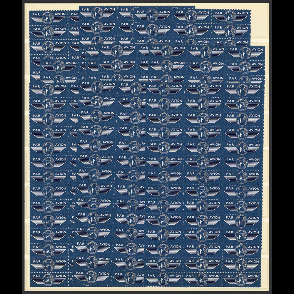 Vignettes ft 40 x 15 mm, Blanc sur fond bleu, dentelées et gommées. NEUF** gomme d'origine