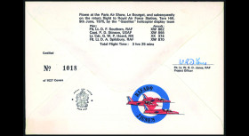 RAF-GAZELLES75D : pli France «Patrouille acrobatique britannique The Gazelles (GB) - Meeting aérien Paris Air Show 1975 et vol retour vers Tern Hill »