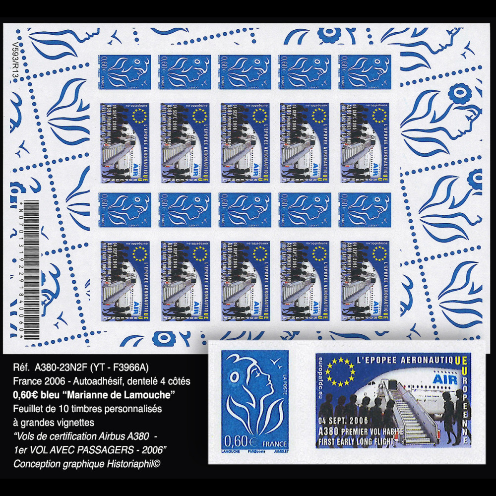 Une série de timbres-poste personnalisés et de plis aérophilatéliques immortalise cette étape marquante de l’histoire du géant européen A380.