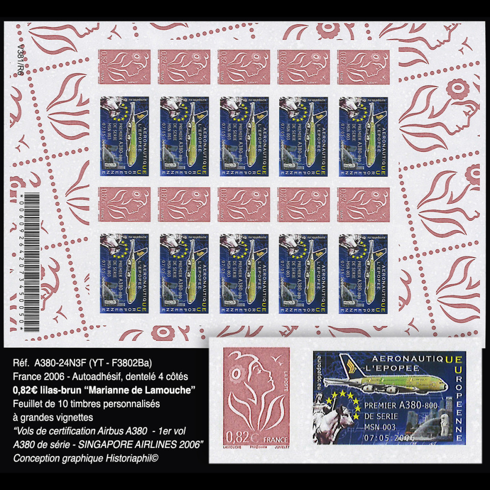Une série de timbres-poste personnalisés et de plis aérophilatéliques immortalise cette étape marquante de l’histoire du géant européen A380.