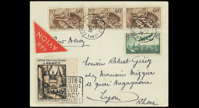 - Affranchissement France 85c VERT "Poste Aérienne - Avion survolant Paris, 1936" (PA 8) + 3x 40c "La Marseillaise" (YT 315)