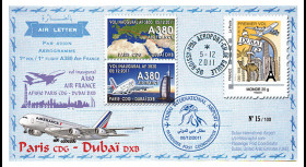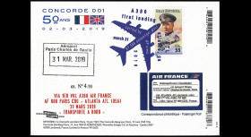 En commémoration des "50 ans du 1er vol de Concorde 001", les éditions Historiaphil, en collaboration avec le Personnel navigant d'Air France, ont conçu une série de plis aérophilatéliques transportés à bord du premier vol Paris (France) - Atlanta (USA) de l'Airbus A380 d'Air France.