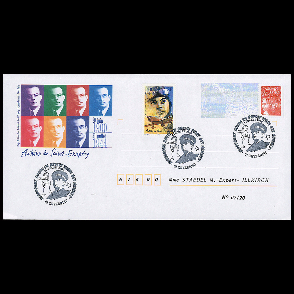 PAP France 2000 "100 ANS SAINT-EXUPÉRY Aérodrome Bourg-en-Bresse, Petit Prince"