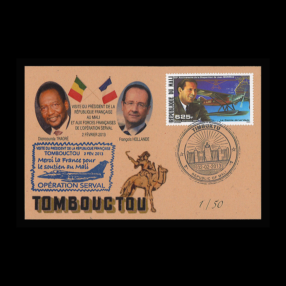 + cachet bleu Tombouctou "Visite du Président de la République française à Tombouctou - Merci la France pour le soutien au Mali / Avion RAFALE - Opération SERVAL" (Mali) 02.2.2013