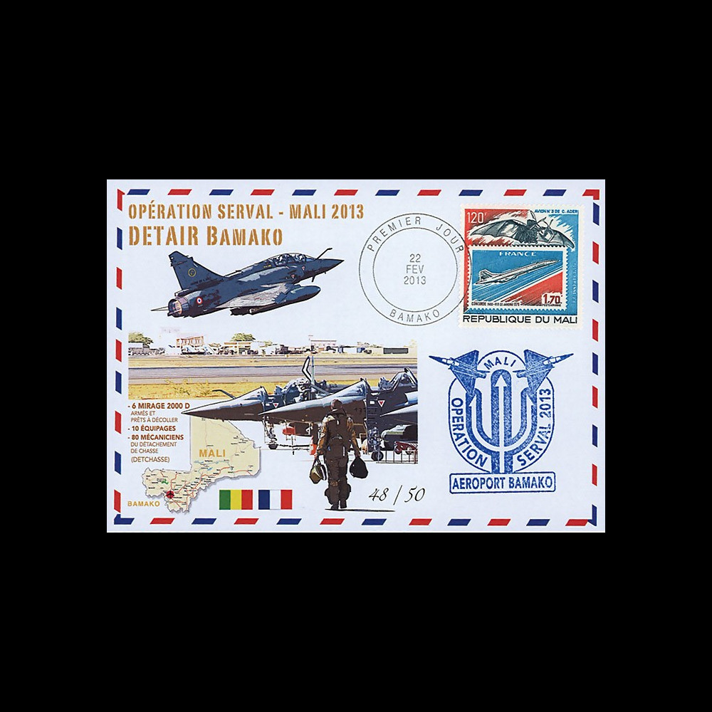 N°MALI13-21T1 : FDC MALI "DETAIR (Détachement Air) BAMAKO (Mali) - Avions MIRAGE 2000 D engagés dans l'Opération SERVAL Mali 2013 / Intervention des Forces Françaises au Mali" 2013 :