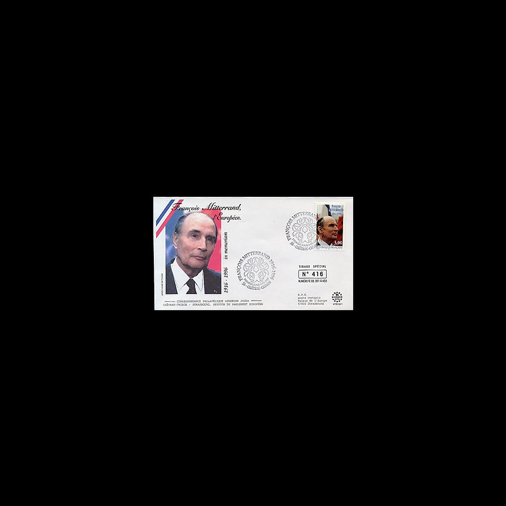 N°PE332-1: FDC "Premier timbre en hommage à François Mitterrand" 1er Jour Château-Chinon 4.1.1997 «François Mitterrand 1916-1996»
