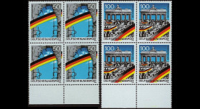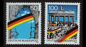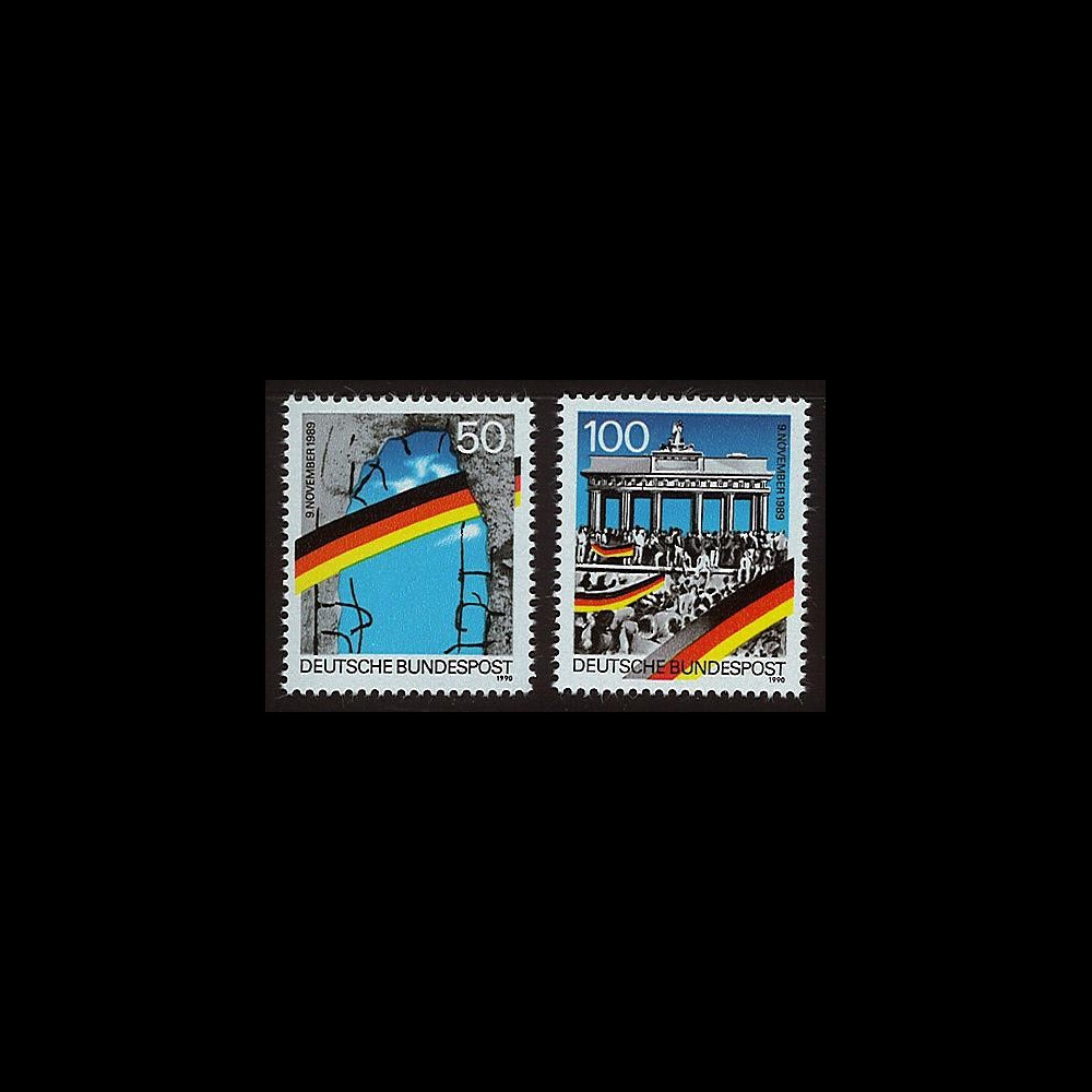 N°PE222N : 2 val. Allemagne 100 et 50Pf '1er anniversaire de la Chute du Mur de Berlin et de l'ouverture des frontières interallemandes' (issues des feuilles de 50) en neuf