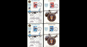 Série des 4 valeurs adhésives ROUGES et BLEUES "Air Force One et Marine One (Avion et Hélicoptère du Président américain OBAMA) tpp France LETTRE PRIORITAIRE et MONDE sur 4 cartes maximum "Air Force One et Marine One"
