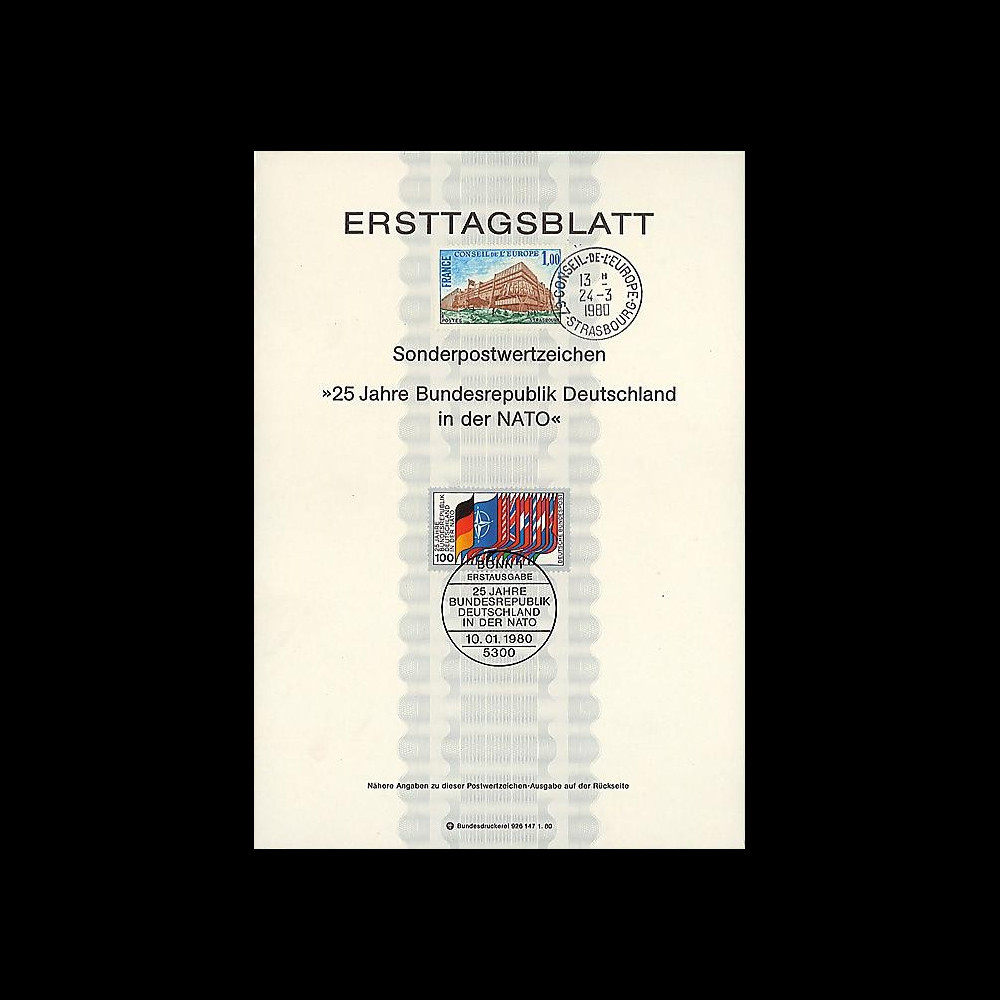 oblitération '1er Jour' Bonn 10.1.80 + liaison postale'Conseil de l'Europe' (OTAN = Organisation du Traité de l'Atlantique Nord)