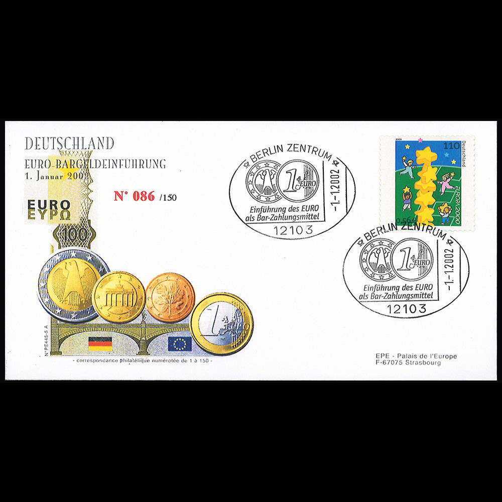 - Oblitération illustrée Berlin “Einführung des EURO als Bar-Zahlungsmittel" 01.01.2002